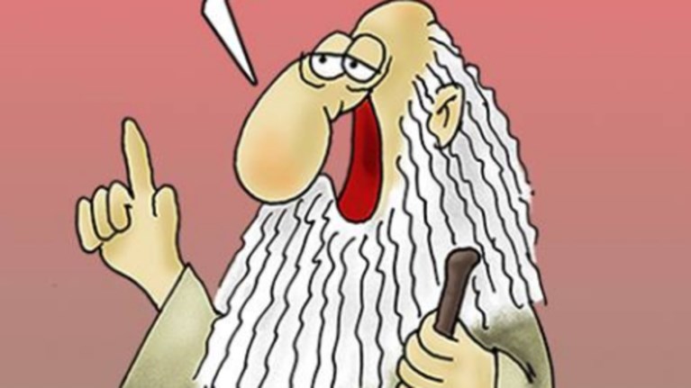 Αυτή τη φορά ο γελοιιογράφος εμφανίζει τον ήρωά του από τη σειρά "Προφήτης" να δέχεται την ερώτηση: "Προφήτη, τι πρέπει να κάνουμε σ' αυτούς που μας έφεραν σ' αυτό το χάλι;".